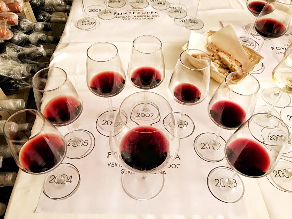 Let’s go back to the winery, to the passion the wine is made with and most of all, to the passion with which the owner, Mose Ambrosi, talks about it. He is truly someone who loves the wine and is present at every occasion that gives him the opportunity to present it. He was with us every step of the way. He showed us every parcel of vineyard starting with Serrapetrona, the area of Vernaccia Nera with a specific soil which gives the wine its mineral character until Civitanova/Montegranaro, the place where white wines become salty because of the sea. We have been delighted to be the witnesses of two verticals, one of Ribonna from the grapes with the same name and the other one for Moro, a wine obtained from Vernaccia Nera and maturated 18 month in barrels. Both wines told us about the potential of the terroir and how each wine area has something particular and special to offer.