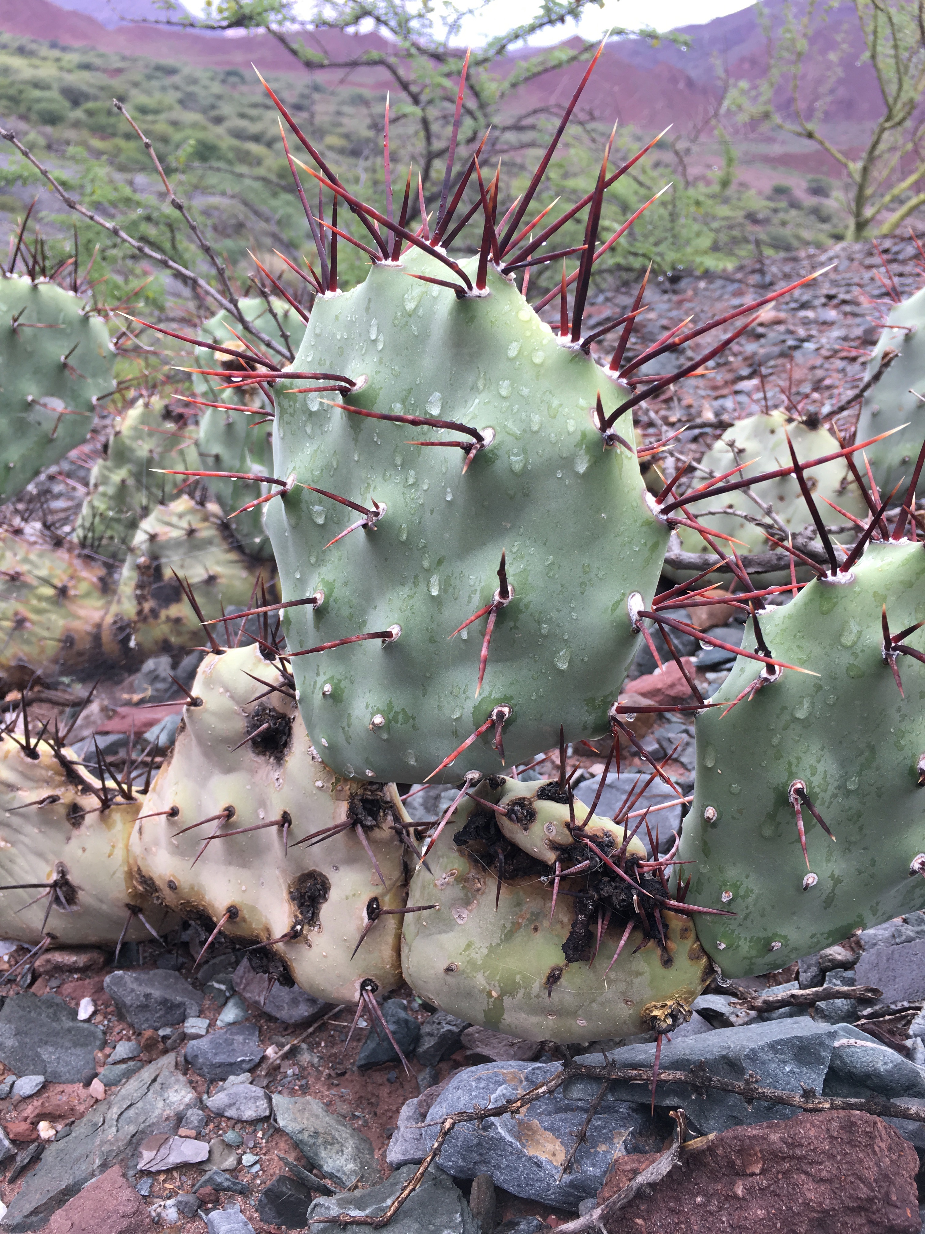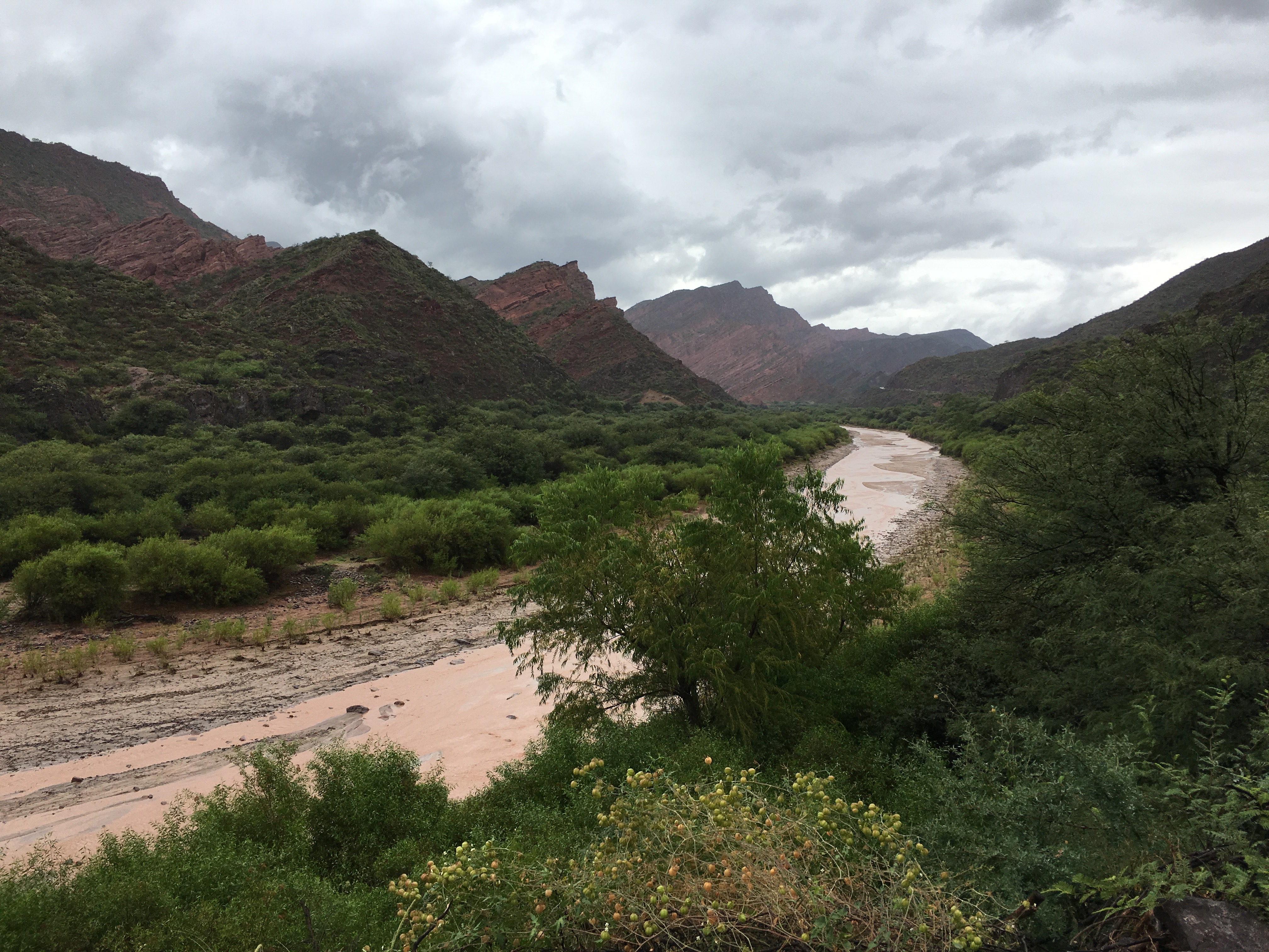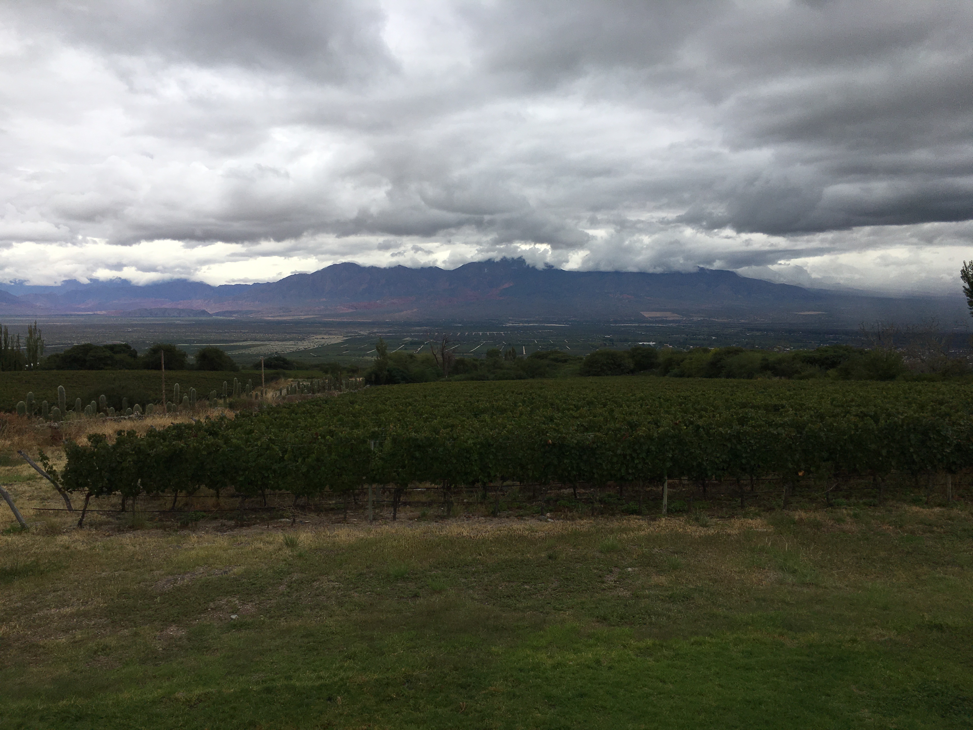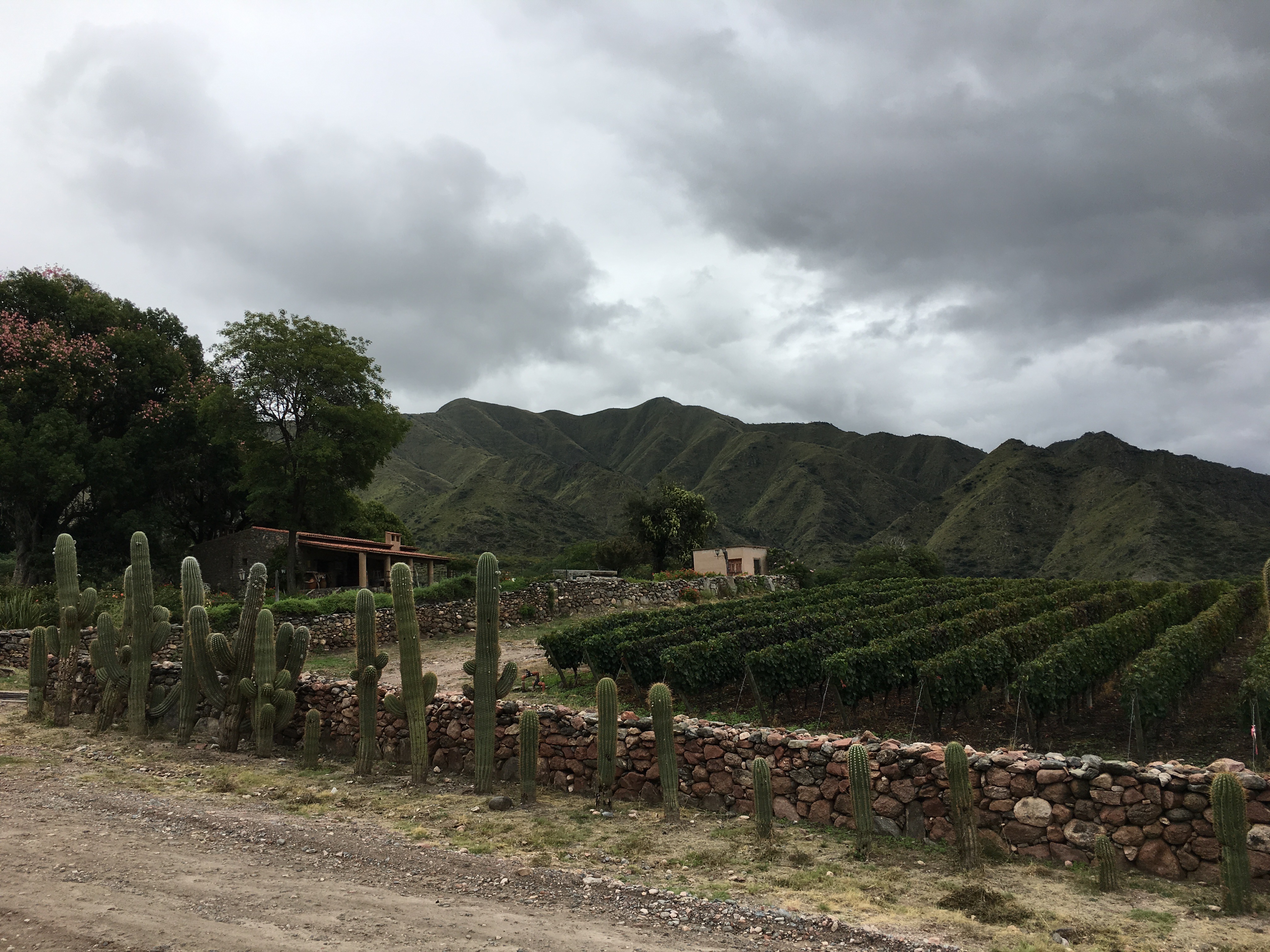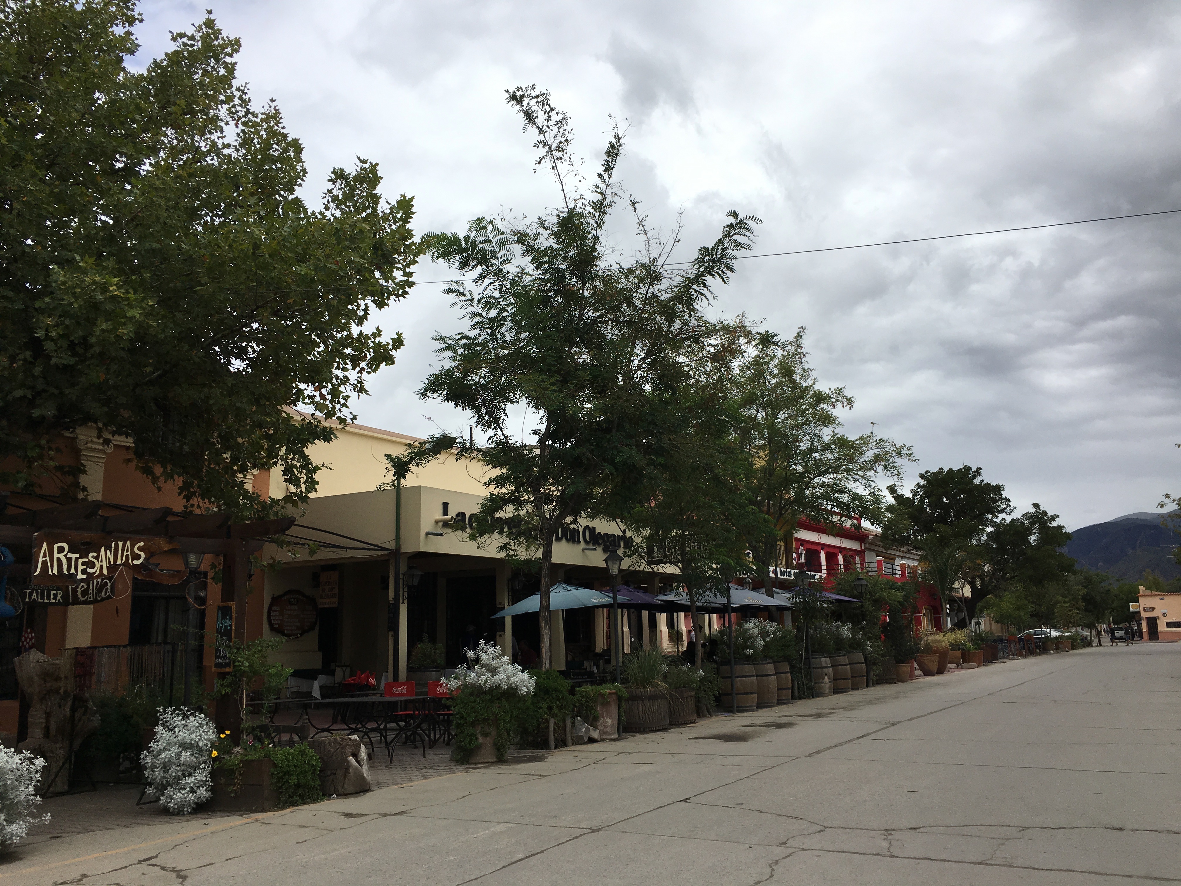 Cald și ploaie de toamnă, la început de cules. Pe marginea drumului, porumb de 2m. Am aterizat în altă lume, aproape de Anzi, puțin mai jos de tropicul Capricornului, unde nici nu mă gândisem că aș putea ajunge vreodată. Am plecat la un drum de 180km, pe valea râului Calchaqui și după un drum de 3 ore jumatate, am ajuns în Cafeyate. Am stabilit întâlnirea la cramă și lihnită de foame am plecat să descopăr micul oraș de aproximativ 15000 de locuitori. Nu vorbesc spaniola, dar cumva mă descurcam în italiană. Puțini erau cei care știau engleză. Evident că am încercat ceva nou și am ales, la întâmplare din meniu, ceva ce suna exotic, “Tamal en chal” și ceva ce știam déjà la ce să mă aștept pentru siguranță: Empanadas cu carne. Primul era dintr-un mălai mare, mai degrabă porumb măcinat grosier ce învelea carne afumată, o găluscă (aproape ca un bulz) învelită în pănuș de porumb și fiert. Servit desigur cu un sos verde sau roșu (acesta picant) și sper să nu doriți amănunte mai multe că la mâncare nu mă pricep, doar la băutură, pe care nu am comandat-o urmând să vizitez crama. Va spun sec, fără zorzoane livrești: delicios.